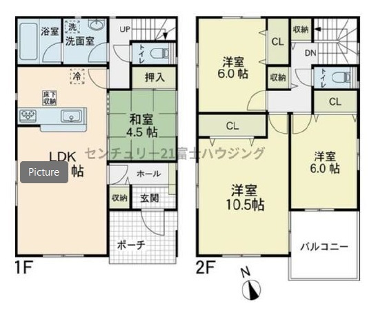 | 間取 | 4LDK (洋室6帖、洋室6帖、洋室10.5帖、和室4.5帖、LDK16帖) | ||