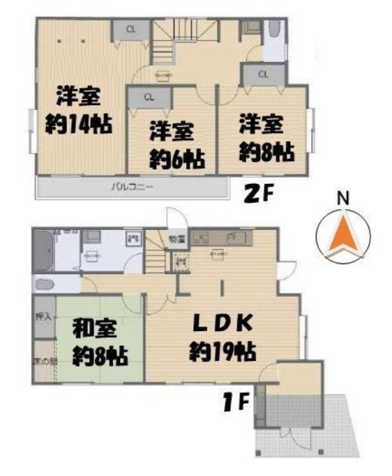 | 間取 | 4LDK (洋室8帖、洋室6帖、洋室14帖、和室8帖、LDK19帖) | ||