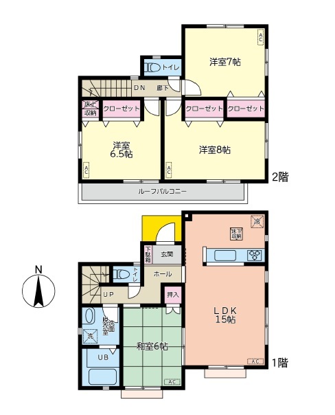 | 間取 | 4LDK (洋室7帖、洋室8帖、洋室6.5帖、和室6帖、LDK15帖) | ||