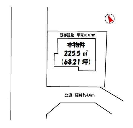 | 接道 | 南側4.6M公道に14M接道 西側10M公道に14.6M接道 |