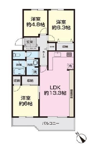 | 間取 | 3LDK (洋室4.8帖、洋室6.3帖、洋室6帖、LDK13.3帖) | ||